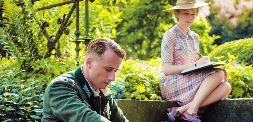 電影中,唯一讓我感受到“電影性”的鏡頭,是布魯諾將他創(chuàng)作的一組音符抄寫(xiě)在信箋上,送給露西爾。當(dāng)露西爾打開(kāi)蝴蝶結(jié)禮盒,特寫(xiě)鏡頭推近至這段手寫(xiě)的哥特式音符時(shí),我的大腦里閃過(guò)一陣戰(zhàn)栗。然而,客觀地說(shuō),這一幕相比于原著,仍略顯輕浮,它太像一個(gè)調(diào)情,從而損失了電影的沉重感。