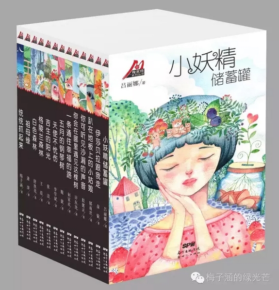 讀完了梅子涵的序言,再來看看為這套書書寫的有哪些學(xué)生,他們是:郁雨君《趴在地板上的小姑娘》、殷健靈《你可聽見沙漏的聲音》、唐池子《白色森林》、蕭萍《祖母綠》、李學(xué)斌《天使不憂傷》、呂麗娜《小妖精儲蓄罐》、王蓓《格陵蘭森林》、張潔《吉生的陽光》、魏捷《五月的鋼琴樹》、俞愉《伊莎貝拉跟我走》、何家歡《一條通往幸福的路》、許東堯《你會在哪里遇見這棵樹》。