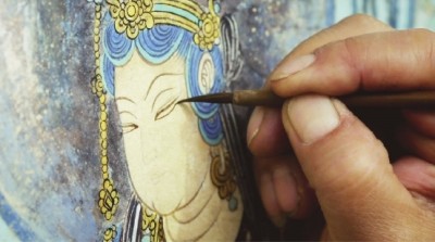 直到今天藝術(shù)家們?nèi)匀徽J(rèn)為毛筆是勾勒佛像的最佳工具。畫家王峰正在臨摹敦煌莫高窟的壁畫。(均紀(jì)錄片 《中國(guó)文房四寶》 攝制組供圖)