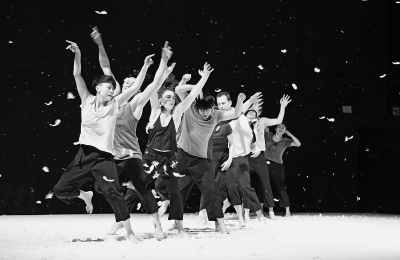 2008年之后,田戈兵進(jìn)入了一個(gè)新的轉(zhuǎn)折。以前他作品中的癲狂拼貼、繁雜道具消失了,代之以最低限度的裝備。因陋就簡(jiǎn)的簡(jiǎn)潔更為神秘。比如2010年的作品《朗誦》,一群男演員以各種身體姿勢(shì)朗讀著各種公共文本,直至進(jìn)入酣暢淋漓的自由境界。歷史的朗讀姿態(tài)被提示,被瓦解,觀眾在前所未有的上下文中面對(duì)現(xiàn)實(shí)。演出的最后,舞臺(tái)上大雨滂沱,演員在慢動(dòng)作的微笑里邁著正步,在汗水中徒勞地獲取朗誦的高潮,之后轟然倒地。那一年在草場(chǎng)地“生活舞蹈工作室”的兩場(chǎng)演出震驚了所有人。這部作品當(dāng)時(shí)只是作為藝術(shù)節(jié)的觀摩作品,沒(méi)有在國(guó)內(nèi)的任何劇場(chǎng)正式上演,但并不妨礙其生命力。它可以被修改、由不同的人重新演繹,甚至可能根據(jù)不同的演出場(chǎng)地進(jìn)行因地制宜的改變。而不是像電影、電視劇這樣的一次性高成本的制作,放映之后就無(wú)法再進(jìn)行調(diào)整與再創(chuàng)作。2013年,受到荷蘭戲劇節(jié)的邀請(qǐng),《朗誦》重新登上舞臺(tái),在荷蘭的幾大城市以及德國(guó)慕尼黑室內(nèi)劇院巡演,引起轟動(dòng)。