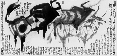 展覽開篇同樣別具一格,作為首先躍入?yún)⒂^者眼簾的板塊“韓美林藝術(shù)大篷車”,它以編年史的方式,通過“時間軸”展現(xiàn)韓美林這些年行走江湖,向民間老藝人“求教”的點點滴滴?!皼]有這個‘大篷車’,就是說我如果不下廠,不下鄉(xiāng),就不會有這么多的創(chuàng)作欲望,也沒有這么多的形象,民間藝術(shù)對我的幫助太多啦?!表n美林說,每次和老鄉(xiāng)在一起,他都感覺特別踏實,不光學(xué)習(xí)畫畫、剪紙、面塑、捏泥人兒,還有秦腔、評彈、黃河大鑼鼓和舞蹈?!拔乙惠呑邮苎影驳哪切├细锩囆g(shù)家的影響,藝術(shù)家不下去不行。你看我們現(xiàn)在美術(shù)學(xué)院的一些學(xué)生,會畫的又有幾個?都是拿著電腦閉門造車。真功夫還在行萬里路?!彼腴_玩笑地說,他如今的構(gòu)思稿即便用上二百年都用不完。這也是他的創(chuàng)作里很少發(fā)現(xiàn)重樣內(nèi)容的奧秘。