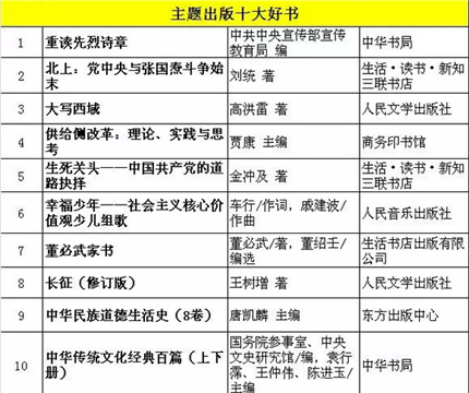 中國(guó)出版集團(tuán)“中版好書2016年度榜”公布(共50種)