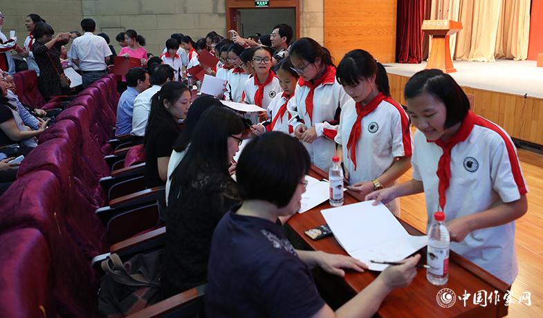 參加頒獎典禮的學(xué)生請獲獎作家簽名
