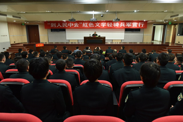 1月30日,中國作協(xié)“到人民中去”紅色文學(xué)輕騎兵軍營行活動在火箭軍北京某基層部隊舉行。八一電影制片廠副廠長、中國作家協(xié)會主席團委員柳建偉以《讓人生與時代同頻共振》為題進行文學(xué)公益講座,并與現(xiàn)場官兵進行互動交流?;鸺娔巢?50余名官兵參加活動,中央軍委政治工作部宣傳局干事丁小煒出席活動。