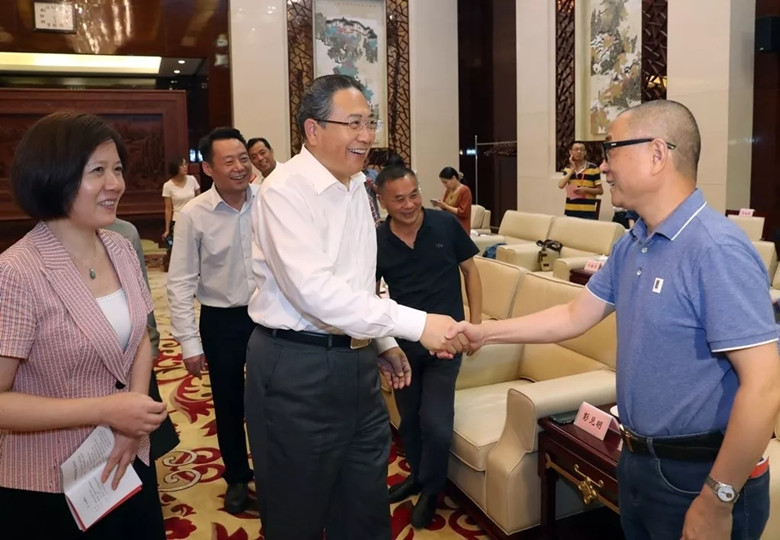 李錦斌書記與湖北省文聯(lián)主席、著名作家、第八屆茅盾文學(xué)獎(jiǎng)獲得者劉醒龍握手