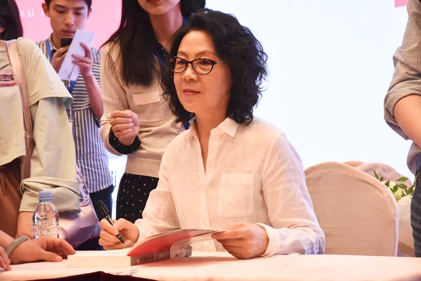 池莉在《大樹小蟲》首發(fā)式暨新書分享會上為讀者簽名