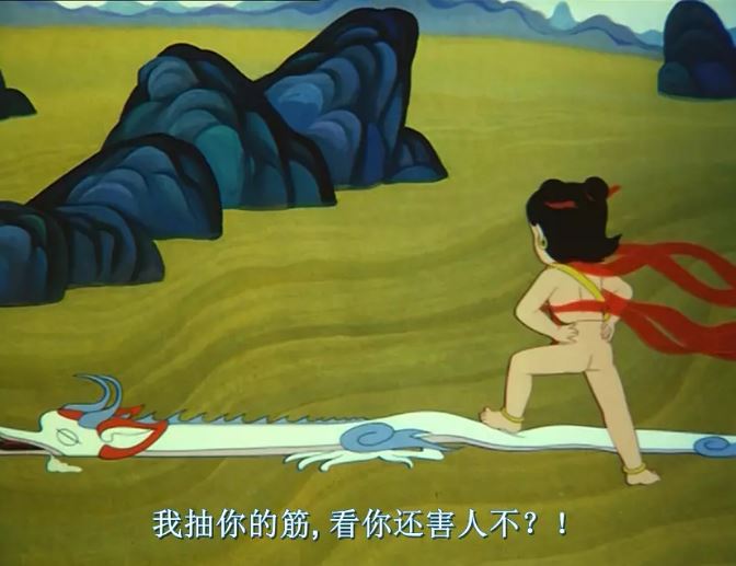 所以,作為經(jīng)典的1979版的《哪吒鬧?!?,本身就是對(duì)《封神演義》里的哪吒形象的再演繹,修正了哪吒的形象,強(qiáng)化其打死龍王太子的正當(dāng)性。1979年版《哪吒鬧?!芬灿猩羁痰臅r(shí)代烙印,將哪吒打敗龍王的故事放在人民反抗統(tǒng)治者壓迫、剝削的語(yǔ)境當(dāng)中。
