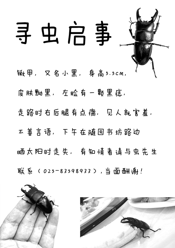 在陌生人那,朱贏椿或許是一個“怪人”。他小時候幻想自己騎著螳螂、蜘蛛在小伙伴中大搖大擺,長大后就用畫筆給蟲子們做了時裝發(fā)布會;他養(yǎng)的蟲子“小黑”不見了,他就在校園里貼了個《尋蟲啟示》;他發(fā)現(xiàn)一只蒼蠅撞窗戶死了,號召朋友圈里200人給這只蒼蠅寫挽聯(lián),還立了一個“蒼蠅之墓”……