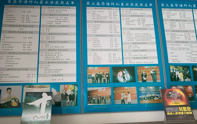 首屆至三屆獲獎(jiǎng)名單展板(時(shí)光幻象科幻博物館供圖)