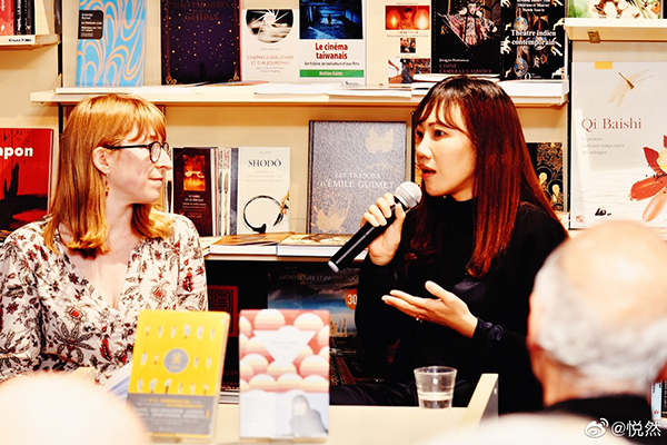 張悅然(右)在巴黎的書店。 圖片來源@悅然