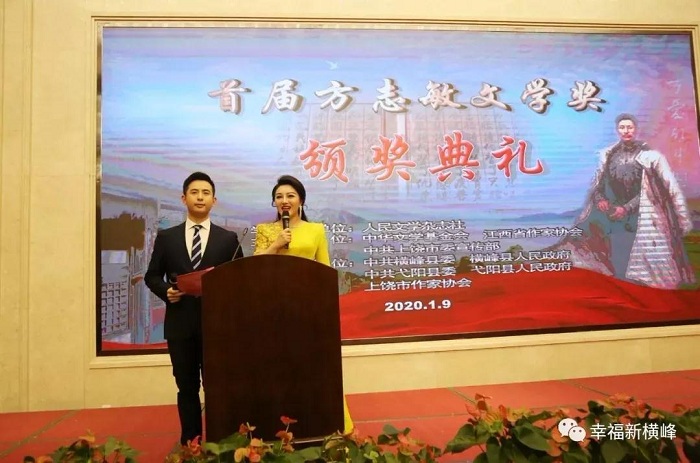 1月9日,由《人民文學(xué)》雜志社作為學(xué)術(shù)指導(dǎo)單位,中華文學(xué)基金會(huì)、江西省作家協(xié)會(huì)、中共上饒市委宣傳部主辦,上饒市橫峰縣、弋陽縣以及上饒市作家協(xié)會(huì)承辦的首屆方志敏文學(xué)獎(jiǎng)?lì)C獎(jiǎng)典禮在南昌前湖酒店舉行。方志敏烈士之女方梅等方志敏親屬及其生前戰(zhàn)友子女代表,《人民文學(xué)》主編施戰(zhàn)軍,江西省委宣傳部副部長黎隆武,上饒市委常委、宣傳部部長丁曉勝,橫峰縣委書記饒清華,弋陽縣委書記謝柏清等領(lǐng)導(dǎo)出席頒獎(jiǎng)典禮。江西省、市、縣相關(guān)部門負(fù)責(zé)人及中央、省、市、縣媒體記者,紅色文學(xué)愛好者,共計(jì)200余人參加頒獎(jiǎng)典禮。