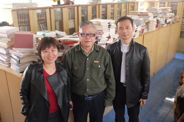 采訪者吳越(左),葉永烈(中),上海作協(xié)組織人事處胡斌(右)在“游泳池”書房