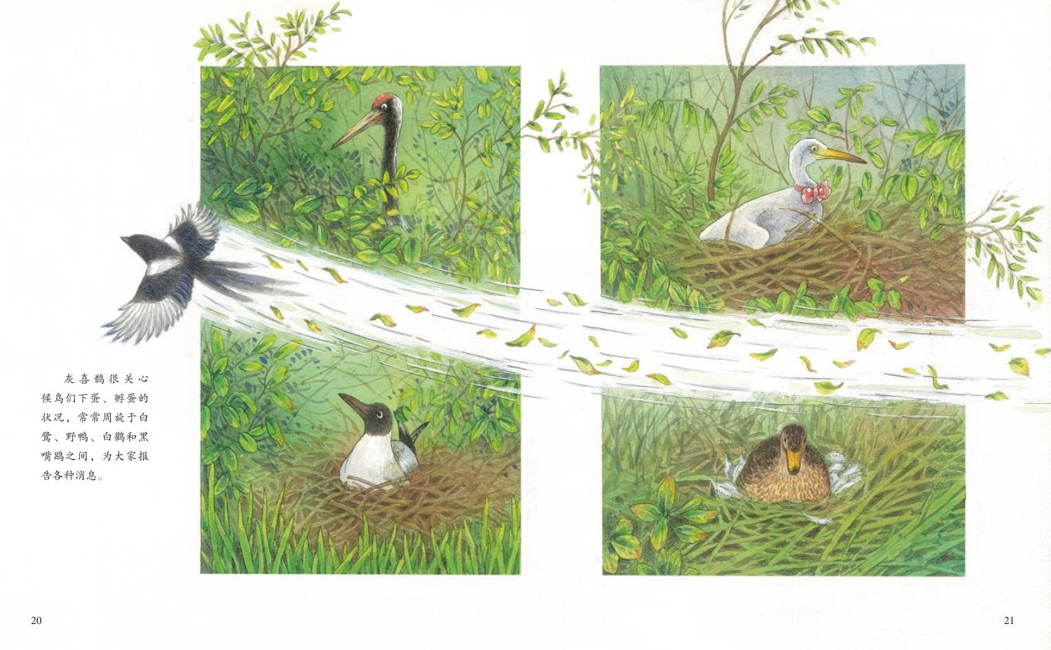迎春花剛剛含苞待放,老白鷺早早地帶著一百多只白鷺,浩浩蕩蕩地進(jìn)入了鳥(niǎo)類(lèi)棲息地——大??跐竦亍_@片濕地始終是白鷺、綠頭野鴨、黑嘴鷗和白鸛鳥(niǎo)們生兒育女的搖籃。盡管濕地的空氣越來(lái)越臭,水越來(lái)越臟,食物越來(lái)越難吃,葦子蕩、槐樹(shù)林、濕草甸萎縮得越來(lái)越小,但是夏候鳥(niǎo)們?nèi)砸蝗缂韧鼗氐竭@里筑巢、生蛋、哺育雛鳥(niǎo)。意外發(fā)生了,鳥(niǎo)兒們下的蛋都很奇怪,根本無(wú)法孵化出來(lái),最終,大家越過(guò)了熟悉的故鄉(xiāng),去遠(yuǎn)方尋找新的棲息地……