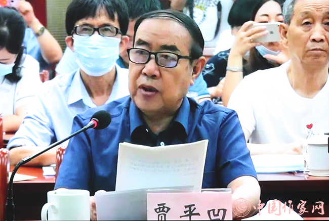 作家賈平凹在陜西作協(xié)分會(huì)場(chǎng)發(fā)言