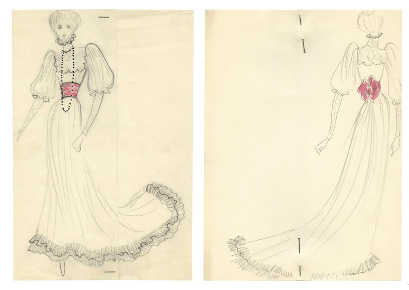 伊夫?圣羅蘭這款塔夫綢禮服設(shè)計(jì)手稿