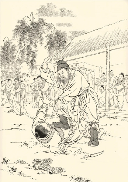 《水滸傳》的作者描寫(xiě)鄭屠畏懼和討好魯智深的心態(tài)惟妙惟肖自不必說(shuō),而其中整理者對(duì)鄭屠說(shuō)的“使得你們快選好的切十斤去”的標(biāo)點(diǎn),亦令人嘆絕?!笆沟谩?,行、可以的意思,這是對(duì)魯智深說(shuō)的?!澳銈兛爝x好的切十斤去”,這是對(duì)刀手們說(shuō)的。整理者注意到了這一點(diǎn),所以特地用破折號(hào)來(lái)表示出說(shuō)話對(duì)象的不同。從這里可以看出整理者的認(rèn)真和匠心。中學(xué)課文《魯提轄拳打鎮(zhèn)關(guān)西》中也采用同樣的標(biāo)點(diǎn),恐怕就是以此為據(jù)的。