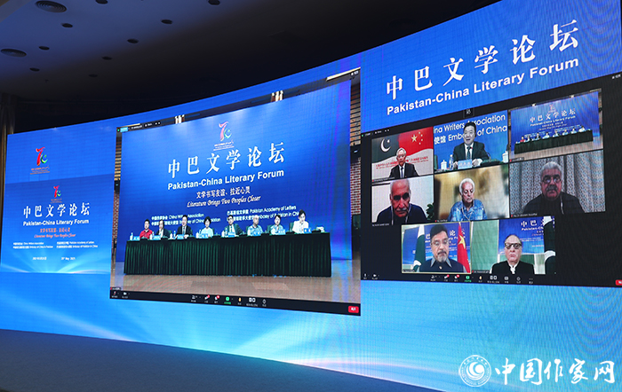 論壇上,周瑄璞、元康、武歆、霍俊明、周袁等中國作家、詩人、學(xué)者和穆斯坦薩爾·侯賽因·塔拉爾、賈米·錢迪歐、阿巴辛·尤薩夫扎伊、穆尼爾·艾哈邁德·巴迪尼、馬克蘇德·賈弗里等巴基斯坦作家、詩人輪流發(fā)言,圍繞論壇主題和“文學(xué)在中巴命運共同體中的獨特作用”“中巴文學(xué)傳統(tǒng)與未來趨勢”等分議題展開廣泛深入的交流。大家表示,疫情雖然阻隔了大家的相聚,但中巴兩國人民始終心心相連。文學(xué)是中巴兩國溝通交流的重要橋梁和紐帶。隨著兩國學(xué)習(xí)漢語和烏爾都語的人數(shù)不斷增加、經(jīng)典著作互譯出版合作的開展,中巴文學(xué)交流呈現(xiàn)出良好勢頭和巨大潛力。相信此次論壇的舉辦,必將進一步深化中巴作家和人民的相互了解,切實促進兩國的民心相通,更好地鞏固雙方的文學(xué)交往,把兩國文學(xué)合作推向全新階段,為攜手打造新時代更加緊密的中巴命運共同體作出積極貢獻。