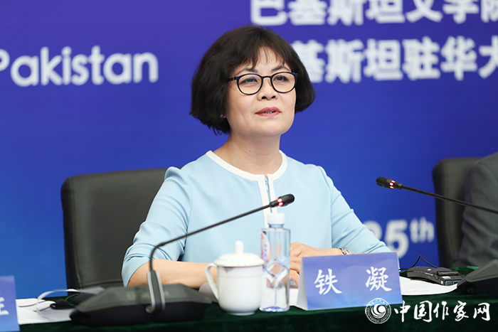 鐵凝指出,中巴兩國都有悠久的文學(xué)傳統(tǒng),為我們留下了無數(shù)名篇佳作,成為全人類共同的精神財富。中巴文學(xué)交流自兩國建交以來從未中斷,在雙邊關(guān)系發(fā)展中一直扮演著特殊的角色。20世紀80年代以來,中國作協(xié)同巴基斯坦文學(xué)院長期保持合作,兩國作家常來常往。作家們通過實地踏訪兩國的歷史文化古跡、面對面地暢談文學(xué),親身體會到了兩國文明的悠久和人民的熱情好客。在“中國·南亞國家文學(xué)論壇”機制的建立和運行過程中,巴基斯坦文學(xué)院提供了寶貴的支持并積極參與其中。今年,為推動“一帶一路”沿線國家的文學(xué)交流,深化文明交流互鑒,中國作協(xié)倡導(dǎo)建立“一帶一路”文學(xué)聯(lián)盟,將向包括巴基斯坦文學(xué)院在內(nèi)的“一帶一路”沿線國家文學(xué)組織發(fā)出邀請函。中國作協(xié)希望同巴基斯坦文學(xué)院攜手努力,在雙邊及多邊文學(xué)交流平臺上加強合作,為共建中巴命運共同體注入人文動力,續(xù)寫兩國文學(xué)交流的精彩篇章。祝愿中巴兩國作家和人民的友誼萬古長青。