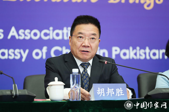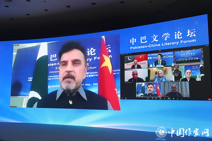 胡邦勝說,友誼是中巴民心相通、彼此親近的關(guān)鍵詞,這種高水平的關(guān)系是中巴幾代領(lǐng)導(dǎo)人精心培育的結(jié)果,歷經(jīng)70年風(fēng)雨,深深扎根在兩國成千上萬的普通民眾心中。新冠疫情加速了世界大變局的演進,在變化與危機疊加的時候,我們更加感受到友誼的寶貴。期待兩國作家擁抱中巴人民火熱的生活,書寫兩國人民的精彩故事,讓兩國人民通過文學(xué)加深了解、增進友好感情。我們希望與巴基斯坦文學(xué)院共同努力,將中巴文學(xué)論壇建設(shè)成為雙邊文學(xué)交流的固定機制,為兩國作家深入交換意見、分享創(chuàng)作經(jīng)驗提供一個新的平臺,推動兩國文學(xué)互鑒互賞,為中巴全天候友誼書寫嶄新的篇章。