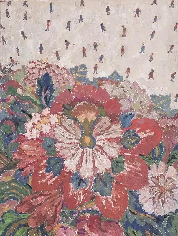 記者:你也說過,自己最愿意畫的就是花和孩子。在《只記花開不記年》里,畫中都有大大的花,而人往往畫得小小的,只有當人具體為孩子時候,才和花融合到了一起。