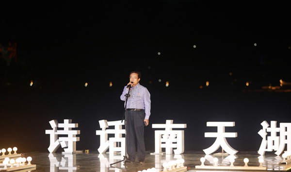 詩(shī)伴歌,云映湖,7月10日晚,首屆“詩(shī)話南天湖”文化朗誦活動(dòng)在豐都縣南天湖畔舉行。重慶詩(shī)詞學(xué)會(huì)的近二十位文學(xué)志愿者參與活動(dòng)。