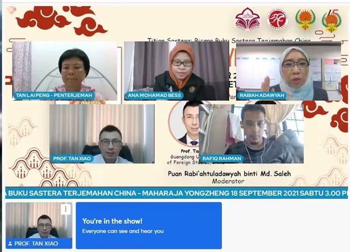 9月18日,由馬來西亞教育部國家語文局、馬來西亞作家基金會和馬來西亞漢文化中心聯(lián)合主辦的“中國文學(xué)讀者俱樂部·當(dāng)代中國文學(xué)讀書會”在線舉行,分享中國作家二月河的作品《雍正皇帝·九王奪嫡》。小說的馬來語譯者鄭麗萍和廣東外語外貿(mào)大學(xué)東方語言文化學(xué)院副院長談笑教授作為主講人參加讀書會,吸引馬來語主流讀者和在校學(xué)生近1000人觀看。