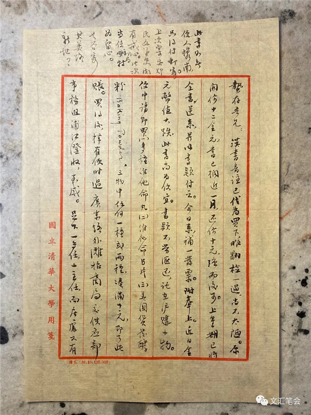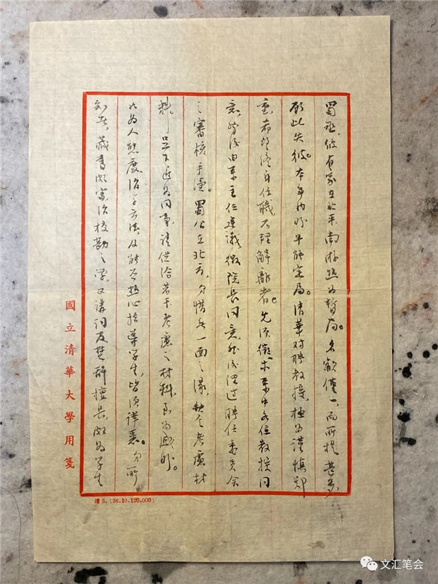 浦先生與施蟄存先生是同鄉(xiāng)兼同學(xué),施先生在《浦江清文史雜文集》序言中寫到:“從小學(xué)到中學(xué)這十年間,我們每天同坐在一個教室里聽老師講課。每星期日,除非雨雪,不是我到他家,就是他來我家,一起抵掌高談,上下古今。中學(xué)畢業(yè)后,他就讀于南京東南大學(xué),我在杭州之江大學(xué)。從此我們就少了見面的機(jī)會,但是我們每星期都有書信往來。”其實(shí)他們的書信往來一直持續(xù)到浦先生的晚年。施老2003年11月去世,所藏碑帖及書信等流出,市上所見浦先生給施老的信中有用毛題清華大學(xué)、北京大學(xué)抬頭信箋所書者,可知。