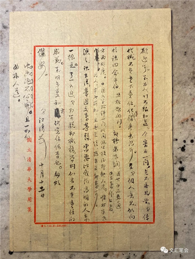 另一通終得入藏寒齋的信札更令人感覺珍貴。所以說更者,不僅同樣寫給我素所景仰的施蟄存先生,同樣內(nèi)容相當(dāng)豐富,還關(guān)涉浦先生短暫一生中學(xué)術(shù)、教育之外的另一件功業(yè),主政清華大學(xué)中國文學(xué)系。這對于正謀食于清華中文系的后輩而言,不能不平添一份大大的親近感了。為節(jié)省篇幅,只將相關(guān)內(nèi)容迻錄于下: