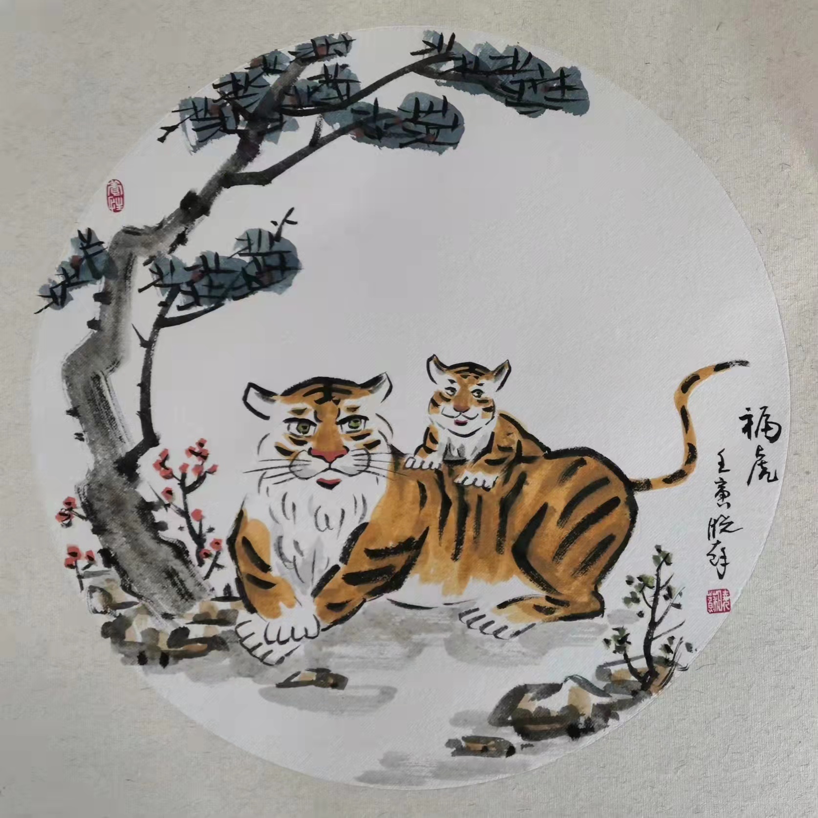 生活中,柯軍儒雅、溫厚、內(nèi)斂、書卷氣十足,是個典型的江南雅士謙謙君子;舞臺上,這個大武生堅韌勇毅,一任縱橫,光芒四射。我把這幅“福虎”轉贈柯軍,愿功夫深諶無匹的大武生借助虎的祥瑞,虎年更加勇猛生威,大放異彩。