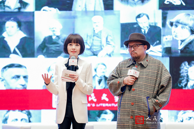 最后一個環(huán)節(jié)是“戲?。号c人生對話”。導(dǎo)演兼演員黃磊在“文學(xué)課”視頻中講述了關(guān)于戲劇和戲劇欣賞的方方面面。濮存昕是國內(nèi)出演莎士比亞戲劇最多的男演員之一,同時也是演出契訶夫作品最多的演員,他現(xiàn)場回憶起自己在父親引領(lǐng)下,由老版網(wǎng)格本中的契訶夫作品開啟了閱讀之旅、文學(xué)之旅。。北京外國語大學(xué)的意大利語文學(xué)譯者文錚對老版網(wǎng)格本心向往之,第一本買到的是《波斯人信札》,他說,自己當(dāng)年對“財富自由”的定義就是可以隨心所欲地買網(wǎng)格本。北京大學(xué)藝術(shù)學(xué)院教授顧春芳在小學(xué)時就讀了網(wǎng)格本的《安徒生童話》,開始攻讀戲劇專業(yè)后又接觸了網(wǎng)格本中的許多劇作,她覺得網(wǎng)格本“就是一個經(jīng)典的符號,它哺育一代又一代人,可以說它是一代又一代人文學(xué)的母乳”。