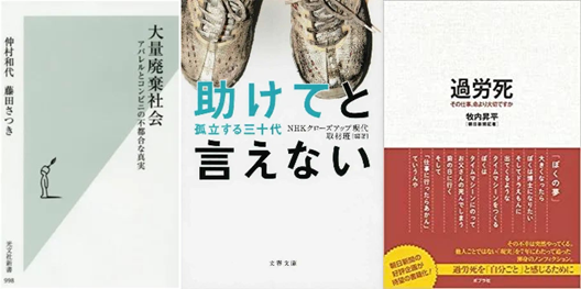 《大量廢棄社會(huì)》《三十不立》《過(guò)勞死》日文版封面