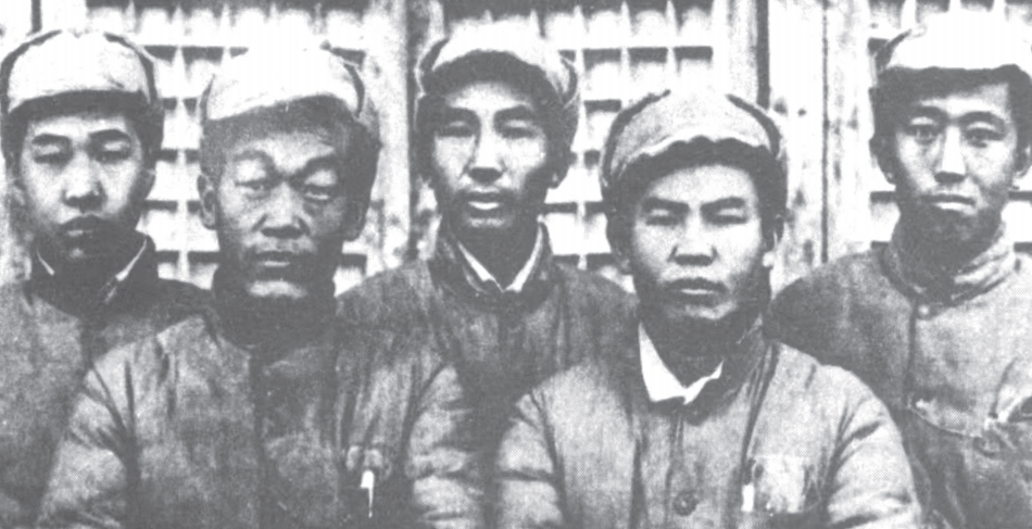 1944年于陜西王家莊合影。右起:馬烽、西戎、束為、孫謙、胡正