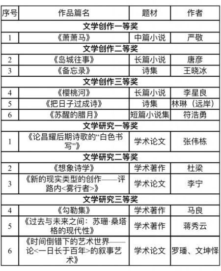獲獎(jiǎng)作品篇目。海南師范大學(xué)提供