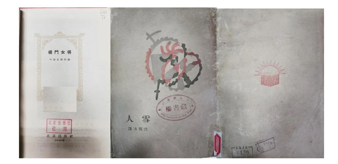 圖1 出版社贈書章、原有藏書印章、二手書價格印章示例