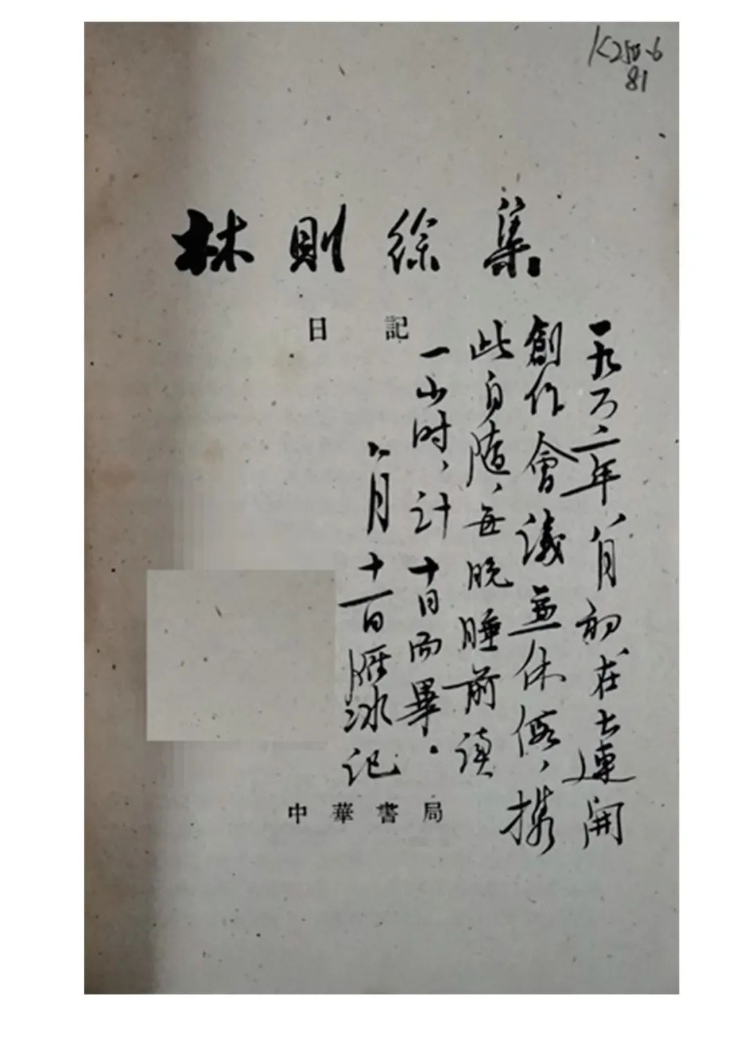 第三種是扉頁閱讀記錄,對閱讀時間、地點(diǎn)與細(xì)節(jié)的記錄筆記是明確的閱讀“留痕”標(biāo)記。茅盾有對閱讀過的圖書在扉頁進(jìn)行記錄的習(xí)慣,如茅盾文庫中《林則徐日記》扉頁題“一九六二年八月初在大連開創(chuàng)作會議兼休息,攜此自隨,每晚睡前讀一小時,計(jì)十日而畢,八月十一日雁冰記”,如圖8。