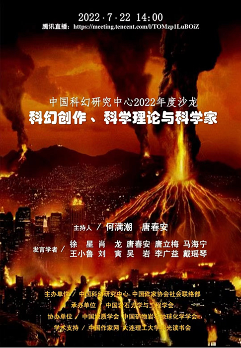 2022年7月22日,中國科幻研究中心2022年度沙龍活動之一“科幻創(chuàng)作、科學理論與科學家”以騰訊會議的方式舉行。此次沙龍活動由中國科幻研究中心、中國作家協會社會聯絡部主辦,中國巖石力學與工程學會承辦,中國地質學會、中國礦物巖石地球化學學會協辦,中國作家網和大連理工大學和光讀書會作為學術支持。