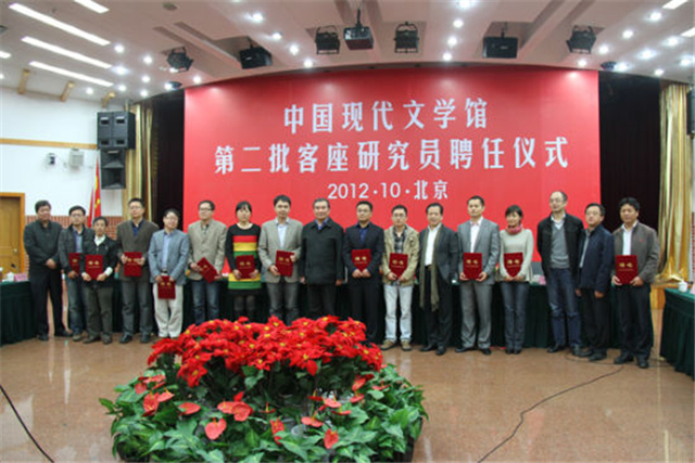 2012年10月22日,黃平、金理、劉濤、李丹夢、傅強、張麗軍、曾一果、何同彬、郭冰茹、劉大先、劉志榮、張立群十二人獲聘中國現(xiàn)代文學(xué)館第二屆客座研究員。郭冰茹(右四)在現(xiàn)場。