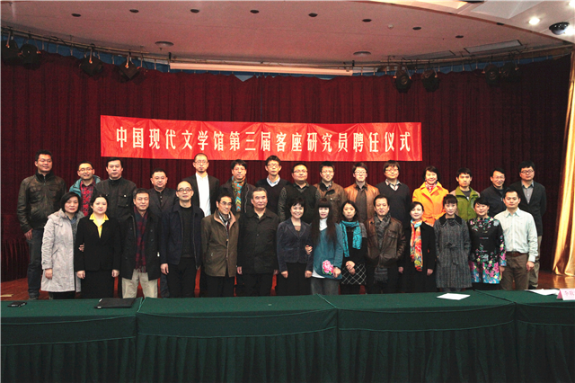 2014年3月14日,叢治辰、徐剛、陳思、饒翔、王敏、張曉琴、金赫楠、熊輝、夏烈、李振、王晴飛、張定浩十二人獲聘中國現(xiàn)代文學(xué)館第三屆客座研究員。李振(后排左五)在現(xiàn)場。