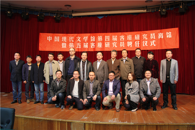 2016年4月10日,韓松剛、李德南、劉波、劉永春、唐翰存、顏水生、晏杰雄、葉子、楊輝、張叢皞、張屏瑾、張濤十二人獲聘中國現(xiàn)代文學(xué)館第五屆客座研究員。楊輝(前排右一)在現(xiàn)場。
