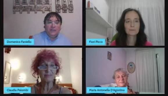 在活動(dòng)上,意大利作家、翻譯家、花達(dá)西亞出版社社長(zhǎng)費(fèi)沃里·皮克女士 (Fiori Picco,中文名:雪蓮) ,意大利詩(shī)人、弗蘭徹斯克加百利國(guó)家文學(xué)獎(jiǎng)主席多梅尼科·法涅洛先生 (Domenico Faniello),意大利著名作家、導(dǎo)演克勞迪婭·帕隆比女士 (Claudia Palombi)和意大利著名詩(shī)人、畫(huà)家、馬泰拉文學(xué)藝術(shù)獎(jiǎng)主席瑪麗亞·安東內(nèi)拉·達(dá)格斯蒂諾女士 (Maria Antonella D’Agostino)四位嘉賓就魯敏作品展開(kāi)了熱烈對(duì)話,并通過(guò)優(yōu)兔(Youtube)平臺(tái)播放,吸引了一大批熱愛(ài)文學(xué)的意大利讀者在線觀看。