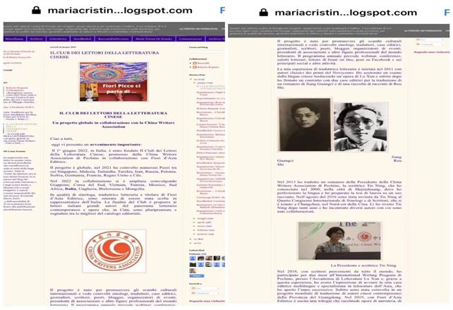 意大利“中國(guó)文學(xué)讀者俱樂(lè)部”開(kāi)設(shè)的文學(xué)博客頁(yè)面