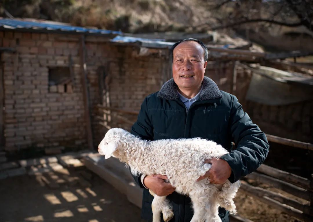 11月16日,寧夏西吉縣農(nóng)民作家李成山抱著家中的小羊羔 馮開華 / 攝