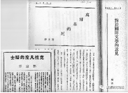 圖二:《東方文藝》《劇場藝術(shù)》《質(zhì)文》幾種刊物上刊文的署名,這是在郭沫若流亡日本時期?!秳鏊囆g(shù)》《質(zhì)文》為在日本東京出版印行的刊物。