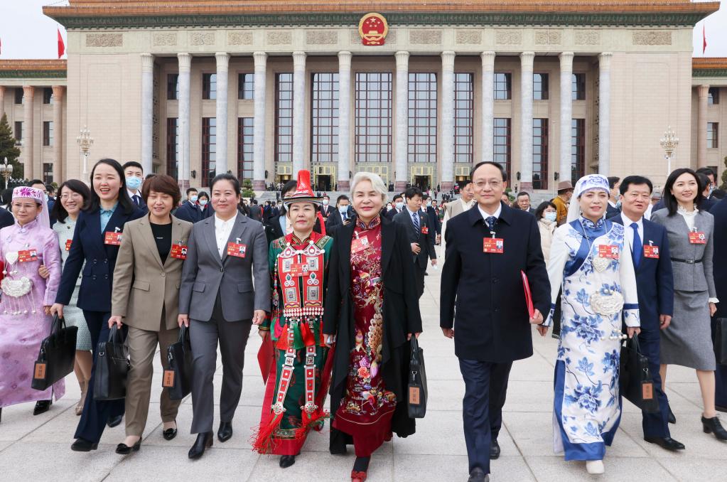 3月13日,第十四屆全國人民代表大會第一次會議在北京人民大會堂舉行閉幕會。這是閉幕會后,代表走出人民大會堂。 新華社記者 張鋮 攝