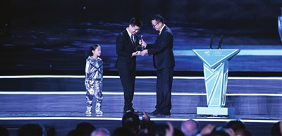 劉慈欣(右)為海漄頒發(fā)雨果獎(jiǎng) 成都世界科幻大會(huì)組委會(huì)供圖