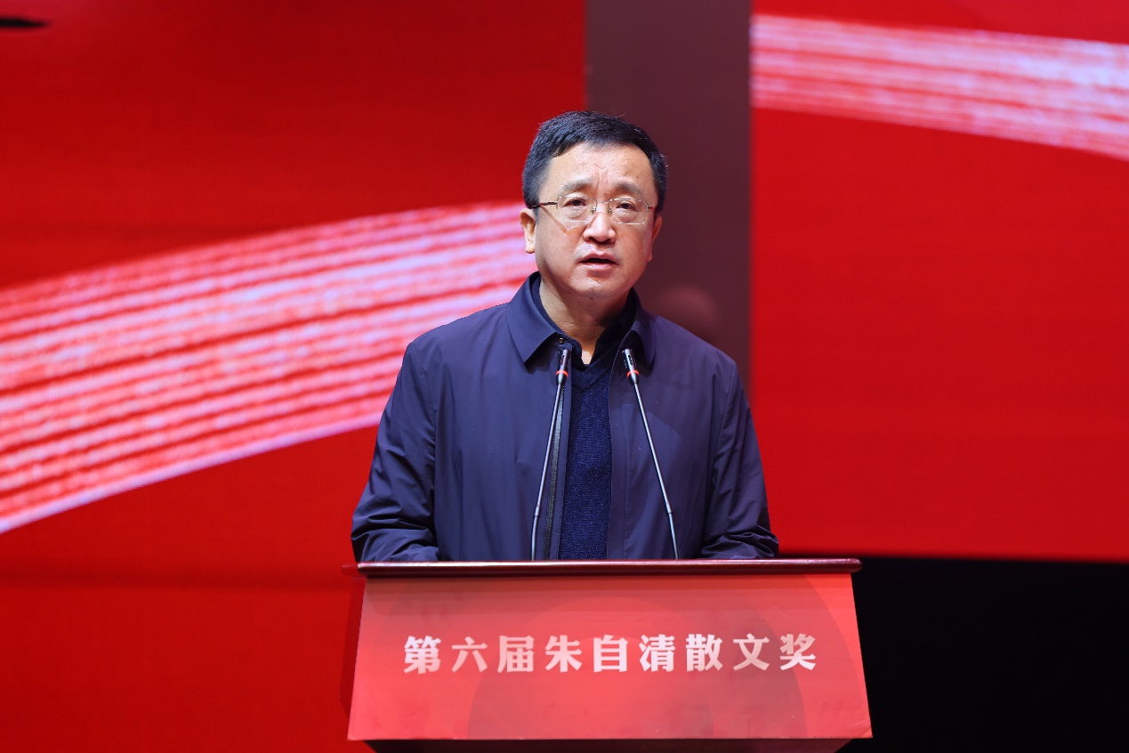 王進(jìn)健致歡迎辭并特別談到,朱自清先生是文學(xué)巨匠、文化先驅(qū)、民族脊梁,他生長(zhǎng)于揚(yáng)州、求學(xué)于揚(yáng)州、任教于揚(yáng)州。在朱自清先生的家鄉(xiāng)舉辦“朱自清散文獎(jiǎng)”頒獎(jiǎng)儀式,既是緬懷朱自清先生,也是傳承、弘揚(yáng)先生的文學(xué)精神,推動(dòng)更多優(yōu)秀文學(xué)精品不斷涌現(xiàn)。
