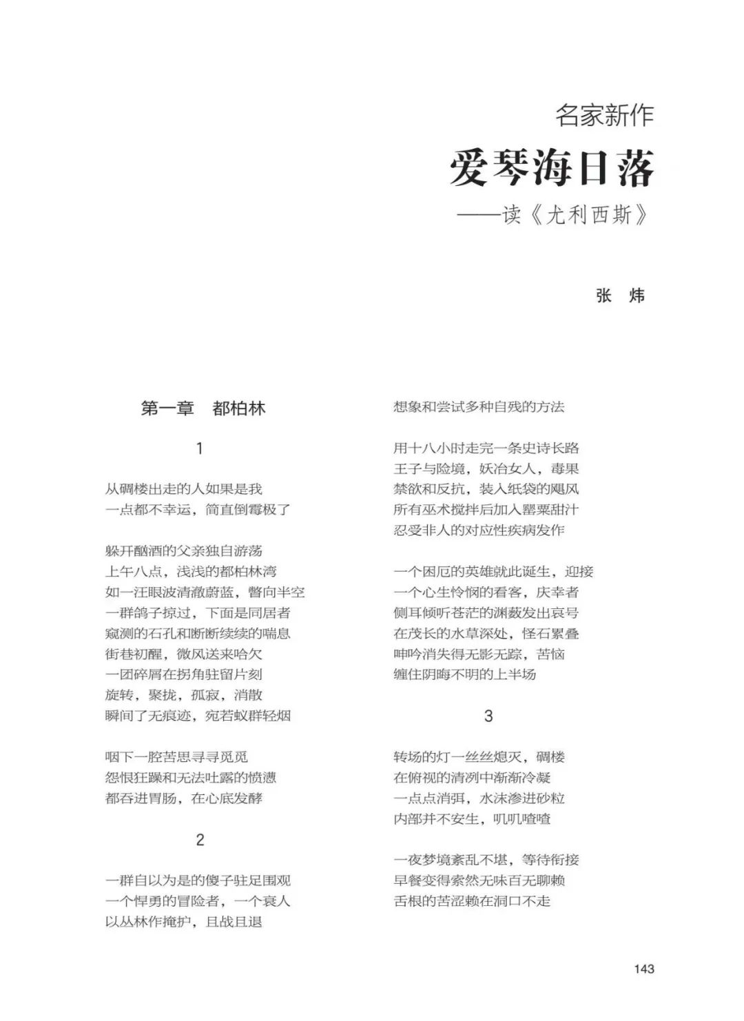 張杰:《愛琴海日落——讀(尤利西斯〉》(以下簡(jiǎn)稱《愛琴海日落》)有一種特殊的精神氣質(zhì),閱讀中波瀾壯闊的微觀歷史、一日長(zhǎng)于百年的感受撲面而來。這首長(zhǎng)詩是否可以理解為您向詹姆斯·喬伊斯《尤利西斯》和荷馬《奧德賽》致敬之作?