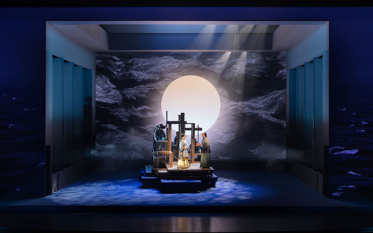 從觀眾角度來看,《北上》并不滿足于以傳統(tǒng)的舞臺藝術(shù)形式呈現(xiàn)運河百態(tài),而是不斷創(chuàng)新已有的文藝表達,通過榫卯結(jié)構(gòu)拼接出的充滿思辨性和多義性的“船”、通過“古”“今”雙演區(qū)的錯落并置、通過漸強的樂曲動機共同拓寬歷史的縱深感,闡發(fā)運河主題的多義性,構(gòu)建出一個開闊、厚重的舞臺世界,完美地實現(xiàn)了“船頭船尾都是故事,岸上水中都是人生”的藝術(shù)暢想。