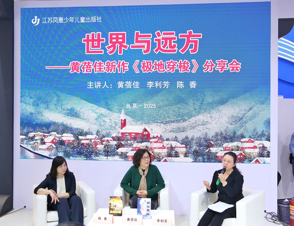 1月9日,北京圖書(shū)訂貨會(huì)第一天上午,江蘇鳳凰少年兒童出版社(以下簡(jiǎn)稱(chēng)“蘇少社”)舉辦“世界與遠(yuǎn)方——黃蓓佳新作《極地穿梭》分享會(huì)”。蘭州大學(xué)文學(xué)院院長(zhǎng)李利芳教授、《中華讀書(shū)報(bào)》總編助理陳香和兒童文學(xué)作家黃蓓佳就長(zhǎng)篇兒童小說(shuō)《極地穿梭》的創(chuàng)作出版、文學(xué)藝術(shù)特色展開(kāi)對(duì)談。江蘇鳳凰出版?zhèn)髅郊瘓F(tuán)董事長(zhǎng)章朝陽(yáng)、鳳凰傳媒副總經(jīng)理袁楠、江蘇鳳凰教育出版社社長(zhǎng)樊明等領(lǐng)導(dǎo)和嘉賓出席活動(dòng)。