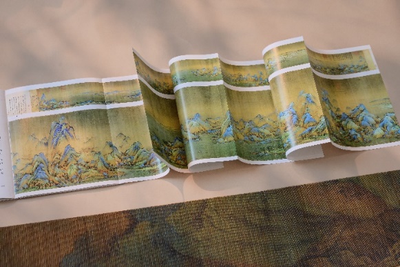 封面由多次獲得“最美的書”獎項的設(shè)計師張志奇老師操刀,將古畫與“人在畫中游”的理念相結(jié)合,3本書3種主色調(diào),用3幅代表性畫作與作者手繪卡通人物結(jié)合,既保留了中國畫的特點,又不失童書的活潑、靈動。內(nèi)文版式雅致,蘊含中式之美,閱讀節(jié)奏好,讓人手不釋卷。通過大拉頁展示了《千里江山圖》《搗練圖》,進一步還原畫作細節(jié),放大古畫之美。
